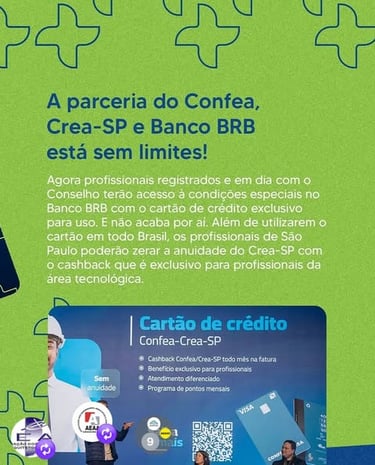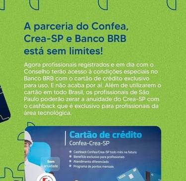💳 O cartão de crédito para os profissionais registrados e em dia com o Conselho chegou ao Crea-SP e essa novidade é resultado da parceria entre Confea e Banco BRB.