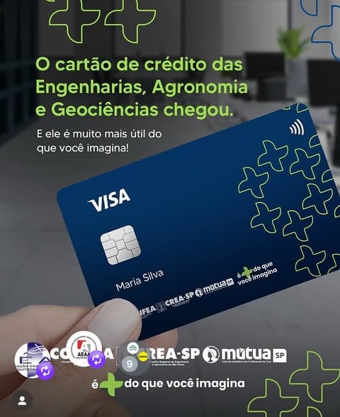 Com o novo cartão você terá: ✅ Condições especiais no Banco BRB; ✅ Uso em todo o Brasil e ainda poderá zerar a anuidade do Crea-SP com o cashback. E não para por aí: em breve, essa novidade também estará disponível em todo o país! *imagem do cartão meramente ilustrativa