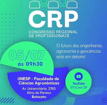 O evento é uma oportunidade para os profissionais da engenharia, agronomia, geociências, tecnologia e design de interiores contribuírem com ideias para políticas públicas eficientes e alinhadas às realidades dos municípios. Participe! Evento gratuito. Inscreva-se! (link na bio @creasaopaulo ).