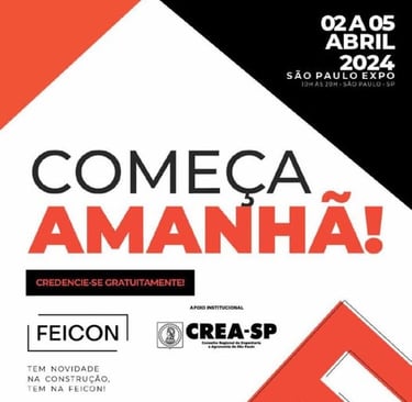 Começa amanhã a FEICON 2024, a mais completa feira do setor de construção civil da América Latina.