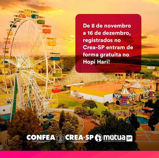 É isso mesmo! Separe seu CREA em formato físico ou digital, faça seu pré-cadastro no site do Hopi Hari, agende sua visita e divirta-se!