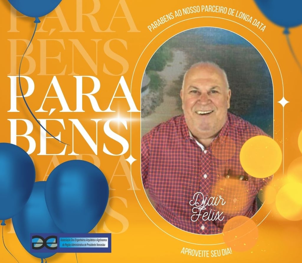 Em clima de festa… hoje comemoramos dia especial para o nosso parceiro, amigo e associado Djair Félix Leite - Dia do seu aniversário. Desejamos muita saúde e alegrias na sua caminhada. Parabéns! 🎊🎉
