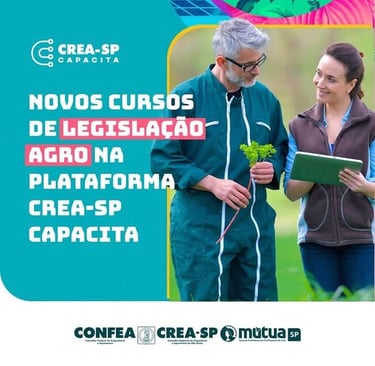Os novos cursos de Legislação Agro já estão disponíveis na plataforma, com certificado incluso. 🚜💡 📑 Esses documentos são indispensáveis para o registro no Crea-SP. #CreaSP